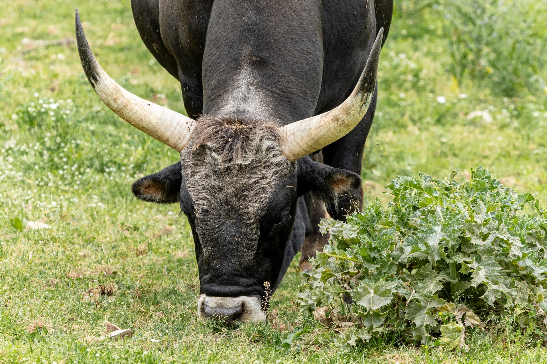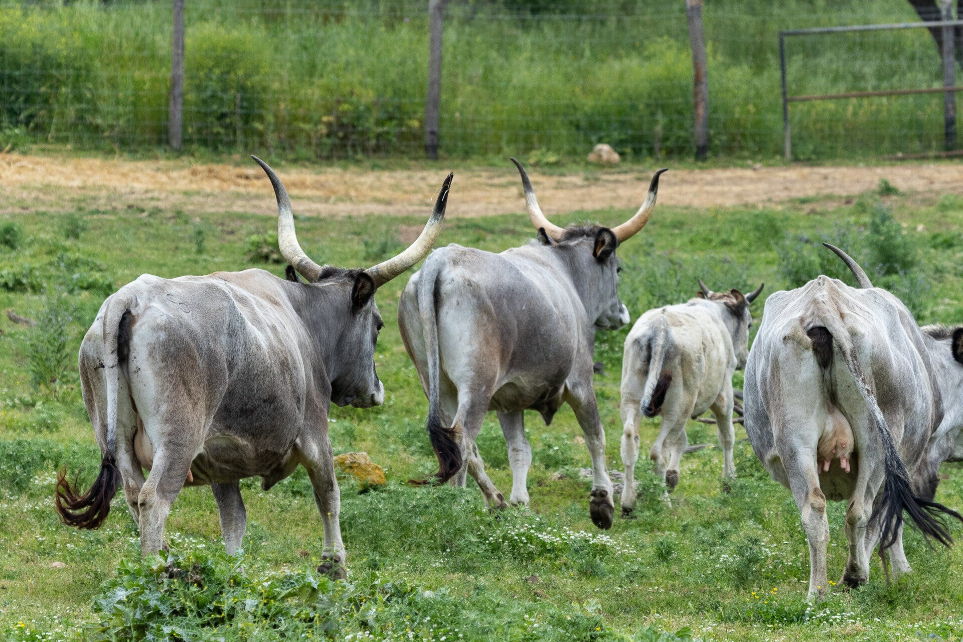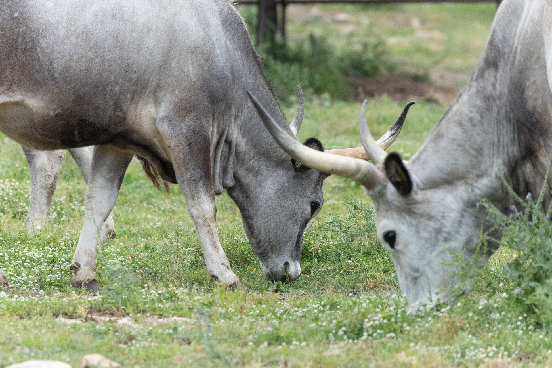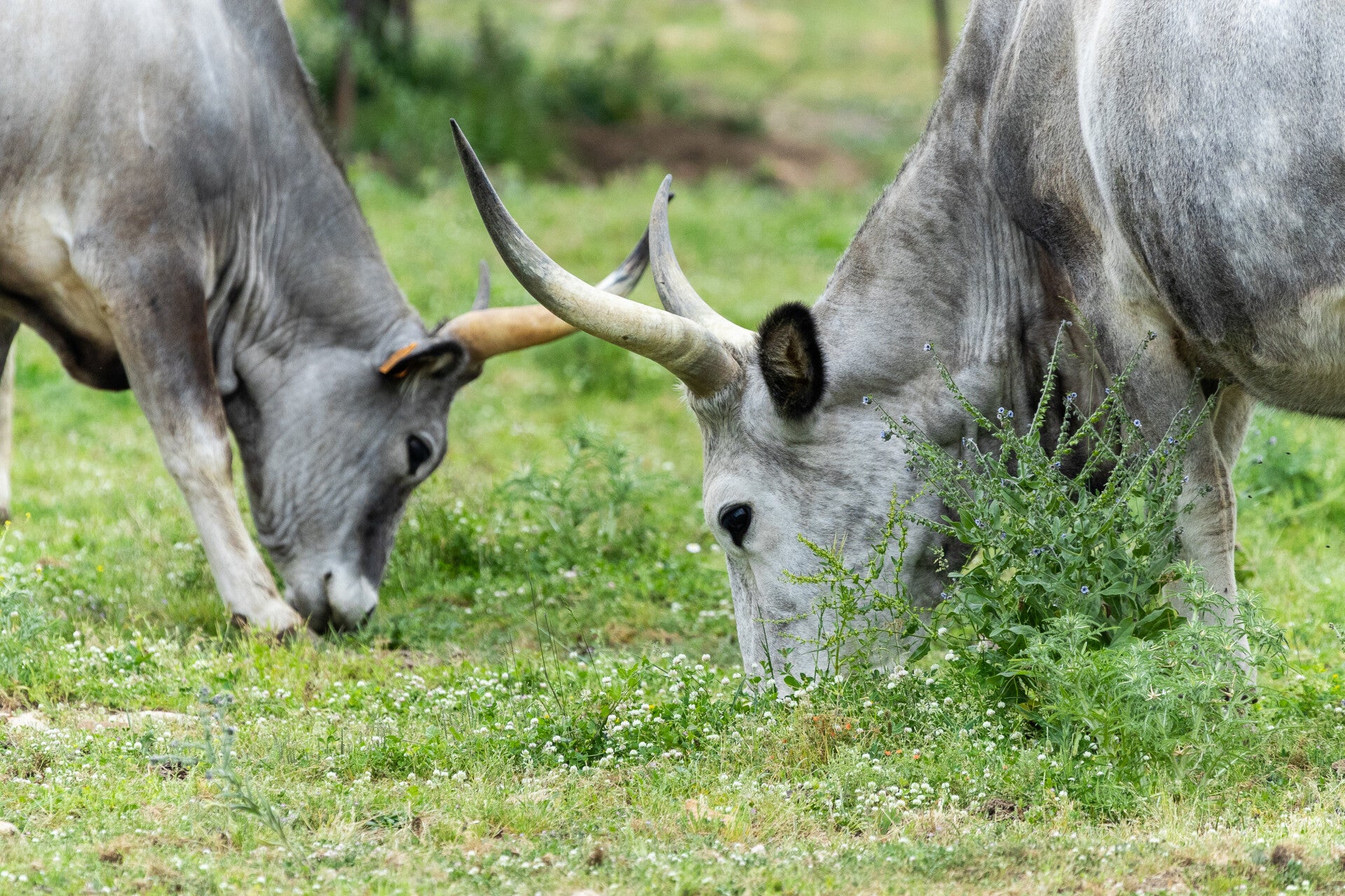 Maremmaner-Rind. Ursprüngliche Hausrinderrasse aus der Toskana / Maremma. Genetisch sind die Rinder mit den ungarischen Steppenrindern der ungarischen Puszta verwandt. Aktuell wird von einem Bestand von 3000 freilebenden Tieren ausgegangen. Ihre Hörner können bis zu 100 cm Länge erreichen.