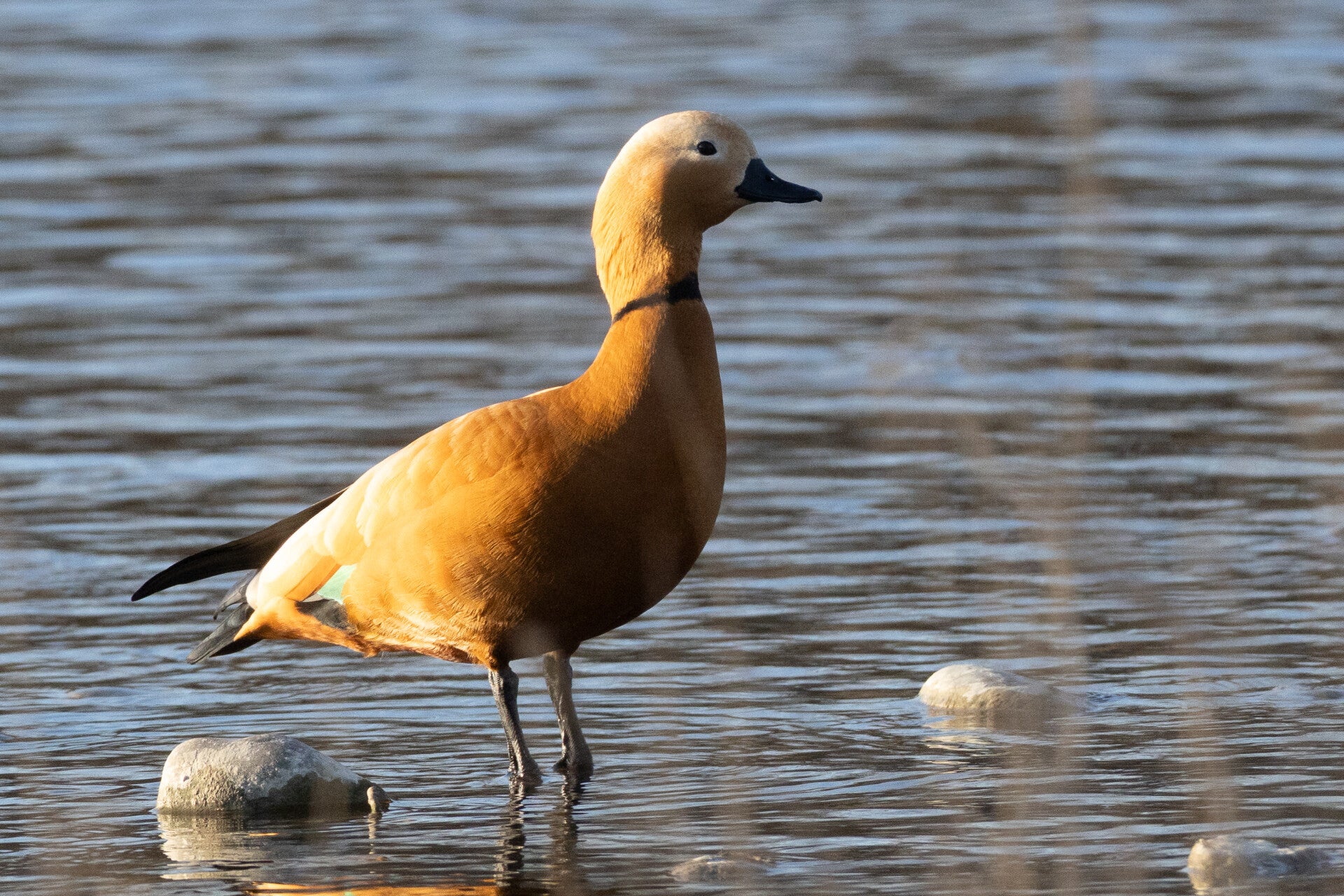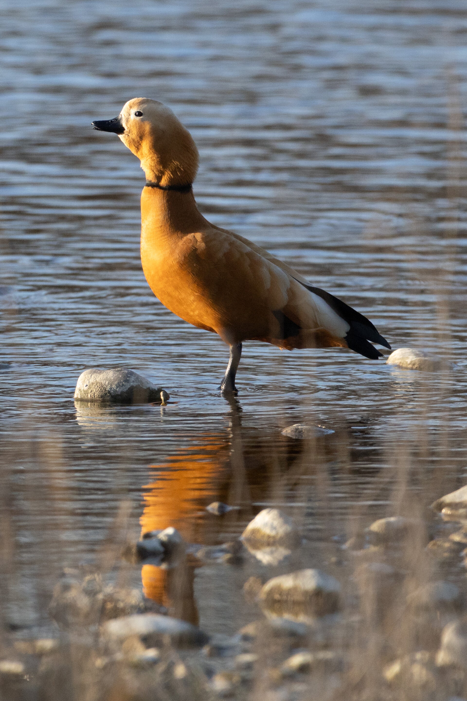 Die Rostgans (Tadorna ferruginea). Die deutsche Bezeichnung „Rostgans“ leitet sich aus der rostbraunen Körperfärbung ab. Beheimat sind die Rostgänse in den innerasiatischen Steppen und Halbwüsten. Die in Europa wildlebende Populationen stammen vermutlich von entflohenen Gänsen ab. Rostgänse sind Höhlenbrüter, die mitunter auch selbst Höhlen graben.