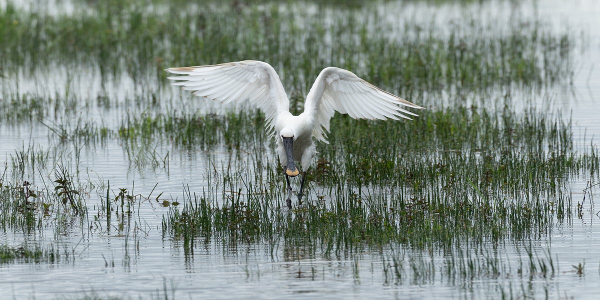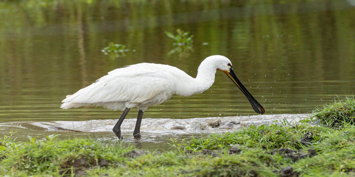 Der Löffler (Platalea leucorodia) ein auffälliger, weiss gefiederter Vogel aus der Familie der Ibisse und Löffler. Er erreicht eine Körpergrösse von 80–90 cm, eine Flügelspannweite von 120–135 cm und wiegt etwa 1,2–2 kg. Sein langer, schwarzer Schnabel mit der löffelförmig abgeflachten Spitze ist sein auffälligstes Merkmal und zugleich Namensgeber. Dieser Schnabel ist nicht nur ungewöhnlich geformt, sondern auch hochspezialisiert: In der Spitze befinden sich mehrere Tausend (etwa 5000 bis 6000) Sinneszellen, sogenannte Meissner-Körperchen. Sie registrieren selbst kleinste Bewegungen im Wasser und ermöglichen es dem Löffler, Beute allein durch Tasten zu erkennen, selbst in trübem oder schlammigem Wasser. Wird ein Tastreiz ausgelöst, schnappt der Löffler blitzschnell zu – innerhalb von nur 0,02 bis 0,03 Sekunden, also etwa so schnell wie ein Wimpernschlag.