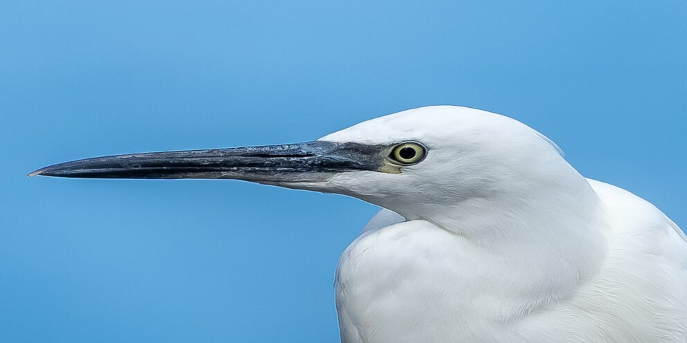 Seidenreiher (Egretta garzetta) In Europa ist der Seidenreiher vor allem in Südeuropa verbreitet, dringt aber in den letzten Jahren immer weiter nach Norden vor. Im Prachtkleid mit zwei langen, zarten Kopffedern und einzelnen, längeren, weissen Federn ("Aigrettes") am unteren Rücken. Länge: 55–65 cm / Spannweite: 88–95 cm / Gewicht: 450–550 g