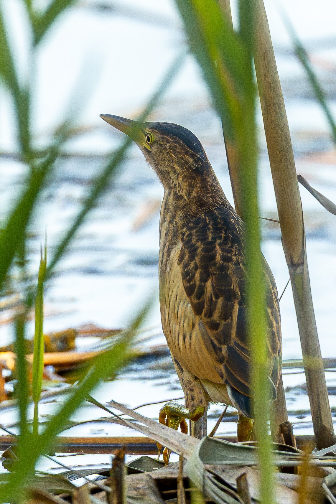 Die Zwergdommel (Botaurus minutus) ist ein scheuer, tag- und dämmerungsaktiver Vogel und gilt in der Schweiz als stark gefährdet. Ihr Winterquartier befindet sich in Afrika. Bei Störungen im Revier nimmt sie die sogenannte Pfahlstellung ein: Mit gestrecktem Hals und nach oben gerichtetem Schnabel verschmilzt sie optisch mit den Schilfhalmen und wird so nahezu unsichtbar. Länge: 33-38 cm / Spannweite: 52-58 cm / Gewicht; 140-160 g