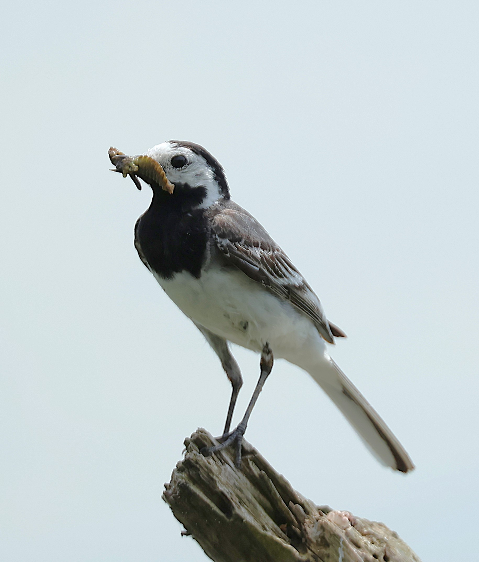 Die Bachstelze (Motacilla alba). Auffallend sind ihr langer, unaufhörlich wippender Schwanz und ihr schwarz-weisses Gefieder, wie ihr schnelles, trippelndes Laufen. Unsere Bachstelzen überwintern vorwiegend in Südwesteuropa und in Nordafrika. Von Mitte April bis Mitte August können Bachstelzen 2 bis 3 Bruten grossziehen. Paare leben in der Regel in einer saisonal monogamen Beziehung.